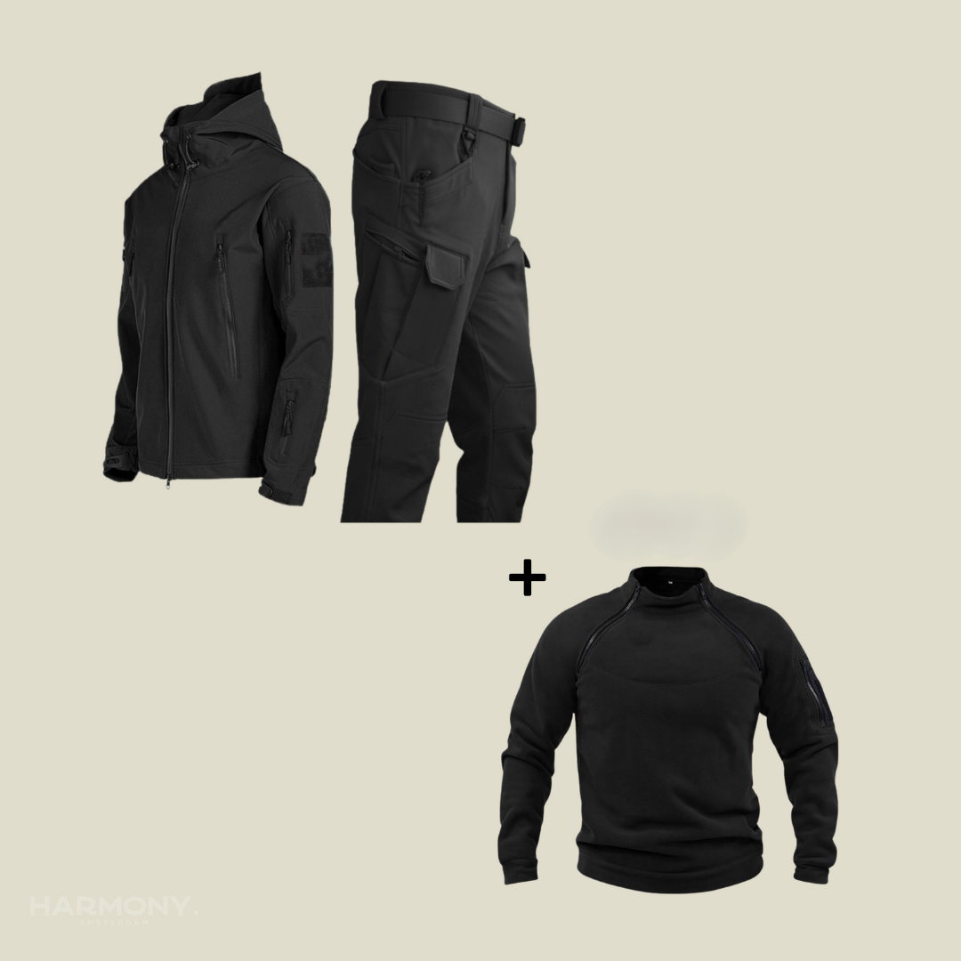 This Max™ - Military Waterproof Suit + free jacket for men comes with a free fleece and is a robust jacket, ideal for autumn, winter and spring. It is waterproof and windproof and has a warm inner lining. With numerous pockets and tactical features, this suit is perfect for outdoor activities. The lightweight polyester fibre material will keep you comfortable and warm whether you are hiking or returning to camp.